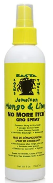 The Jamaican Mango and Lime No More Itch Gro Spray is recommended for people who wear locks and twists because unlike traditional hair styles where scalps and blood circulation are stimulated by combing and brushing, locks and twists don't require that.